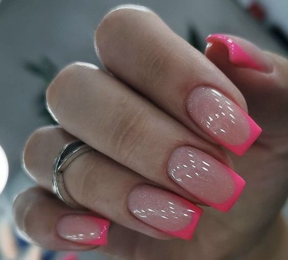 Если любите выделяться - выбирайте разнообразные цвета. Край ногтя может быть розовым, зеленым, голубым. В зависимости от вашего вкуса.
