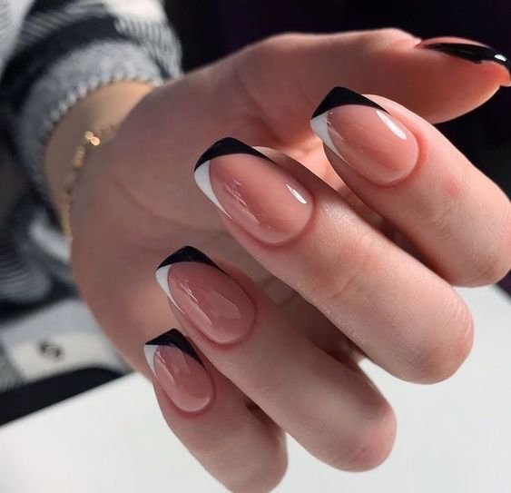Белый край ногтя с нестандартной геометрической формой. К примеру, треугольником или полоской.