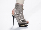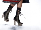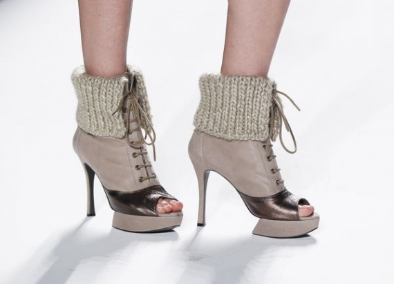 В интернете просматривает показ южнокорейского дизайнера Сын Чжун Вань. Она представила коллекцию обуви и клатчей сезона осень-зима 2012 на Неделе моды в американском Нью-Йорке. На подиум выходит модель в ботинках с открытыми носком и пяткой. Каблук прикрывают вывернутые шерстяные и меховые голенища.