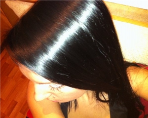 "Желатин намазываю по всей длине волос. Но не трогаю корни. Не желательно, чтобы попал на кожу, потому что плохо вымывать, - продолжает студентка. - Главное - хорошо покрыть кончики. Там, где больше секутся волосы. Желатин скроет этот недостаток. Смесь держу на голове 40 минут, смываю теплой водой. Когда подсушиваю - волосы блестят. На ощупь гладкие".