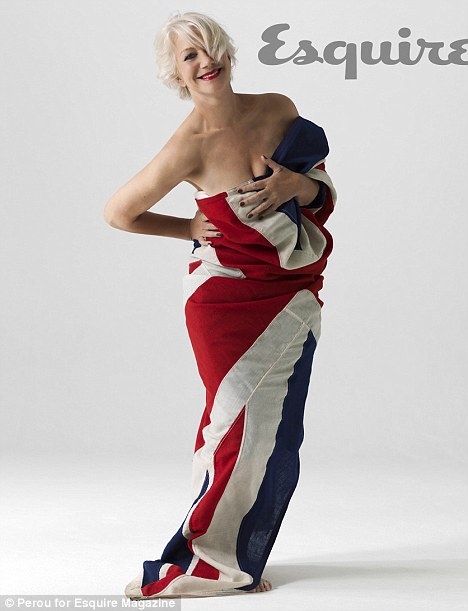 Британская актриса Хелен Миррен для журнала Esquire позировала в достаточно откровенном виде, задрапировавшись в британский флаг.