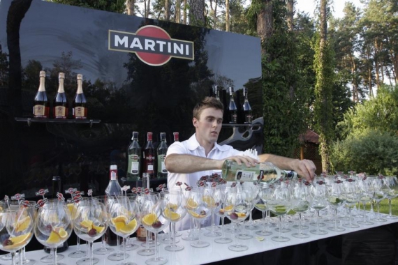В одном из столичных ресторанов под Киевом на днях состоялась вечеринка "Мартини Мей Фешн". Во дворе перед рестораном расставили несколько мини-баров с бокалами. В них официанты разливали коктейли из "Мартини Бьянко", "Мартини Россо" и "Мартини Асти".