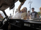 Один удивленный происходящим россиянин сказал: "Я не уверен, что они очень хорошо вымыли машину, но я все же с удовольствием наблюдал за процессом".