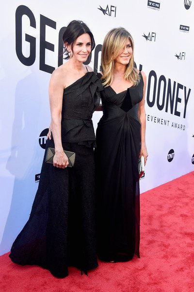 49-летняя Дженнифер Энистон и 53-летняя Кортни Кокс дружат давно, теперь актрисы стали гостьями церемонии вручения премий AFI Life Achievement Award.