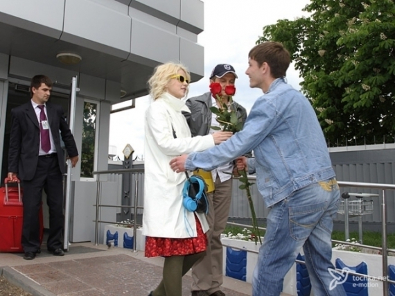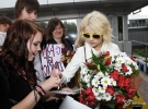 В "Борисполе" певицу встречали журналисты и поклонники, которые приготовили ей торт и цветы.