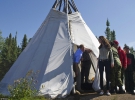 На озере Блэчфорд супруги наслаждались природой, а также отдыхали активно: совершили прогулку на каноэ и на самолете-амфибии, а также посетили учебно-исследовательский центр в индейском поселении, где им показали, как следует свежевать дичь, и рассказали об устройстве вигвама.