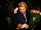 Затем из подъехавшей к ресторану машины вышел Николай Басков с букетом розовых роз в руках.