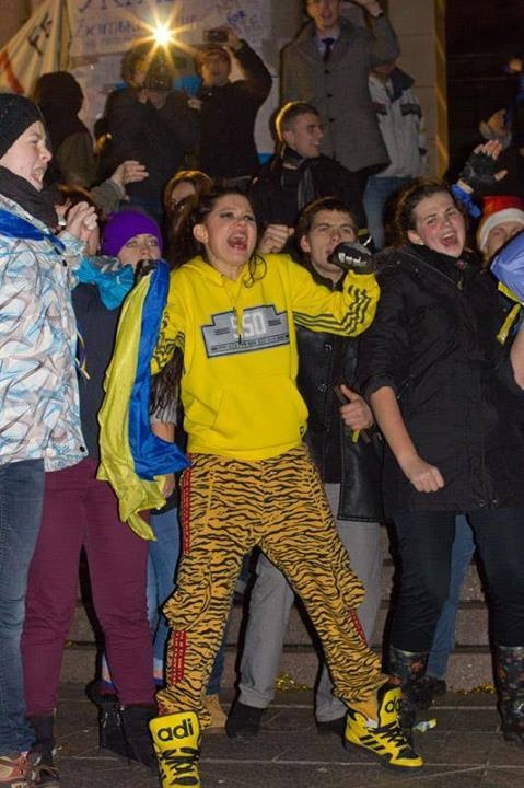 "У меня отморожены пальцы левой руки и губы, потому что я всю ночь держала микрофон и пела. У меня розпухли ноги, потому что мы ни на минуту не останавливались. Но я скоро снова буду на Майдане. Готовимся уже сейчас к сегодняшней ночи! Разрисовывайтесь все в желто-голубое, одевайтесь теплее, берите много чая и приходите к нам на Майдан".