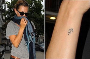 Кейт Мосс сделала себе маленькую татуировку в виде якоря. На одном из ресурсов, посвященных тату, написано: