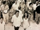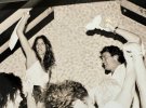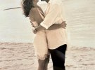 Невеста в день свадьбы 25 лет назад выбрала миниатюрное платье-комбинацию, а ее муж был в белой рубашке на выпуск и черных штанах. Оба были босиком. Свадебный торт пара украсила красными цветами, что только добавило стильного контраста.