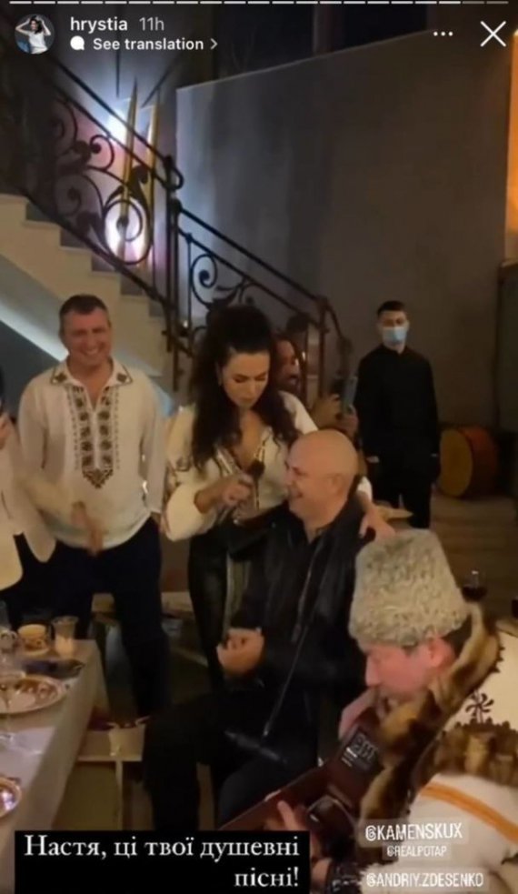 На вечеринку Настя пришла в вышиванке и кожаных штанах. Потап предпочел total black.