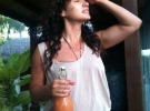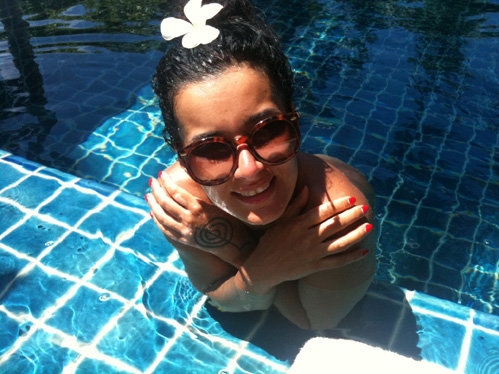 "Здесь очень жарко, – объяснила Канделаки в своём микроблоге. – Приходится спасаться в бассейне".