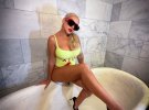 Звезда позировала в ванной в ярком виде. Фото опубликовала в Instagram.