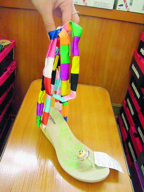 — В этом сезоне это писк моды. Уже вторую партию продаем. Здесь подошва из тунита, он не стирается, — рассказывает продавец магазина "Черевичек". — Благодаря цветной ленте можно подобрать любой верх.