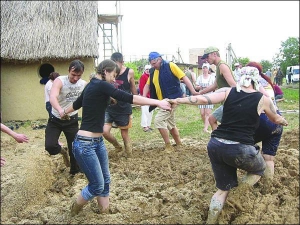 13 июня 200 человек собрались около Музея трипольской культуры в селе Легедзине Тальноивского района на толоку. Посреди двора глина, несколько бочек воды и стол регистрации. На столе миски с салом, хлебом и квашеными огурцами и помидорами. Мужчины и женщины регистрируют приезжих. Наливают каждому по рюмке самогона. Все охотно регистрируются, закусывают.