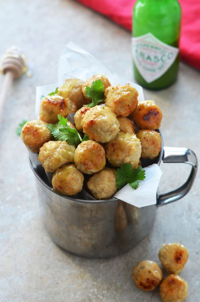 В небольшой миске смешать мед и соус табаско. Помазать им все фрикадельки кисточки.