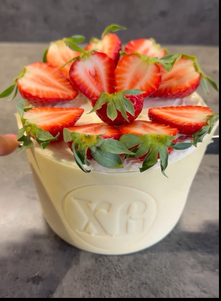 Переворачиваем десерт, осторожно и медленно снимаем силиконовую форму. Украшаем клубникой и подаем.