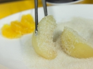 На другое противень положить яблоки и запекать на верхнем гриле. Так получается сверху на фруктах карамель, а внутри правильная плотность.