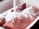 Через три дня вынуть мясо из соли и промыть хотя бы полчаса подержать под слабой струей воды