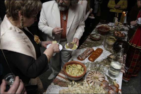 В ночь на среду Львовская община в Киеве проводила там традиционный бал "Маланка". На первом этаже гостей колядками встречает хор. Разливают львовское пиво, предлагают кофе.