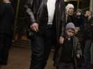 Певец 44-летний Олег Скрипка снимает возле гардероба кожаную куртку.