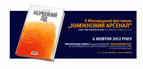 6 октября на II Международном фестивале "Книжный Арсенал" Андрей Бондарь представит сборник эссе "Морковный лед". Книга содержит колонки Андрея Бондаря, опубликованные в "Газете по-украински".
