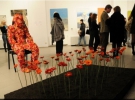 Немалый ажиотаж у гостей презентации вызвал человек из цветов, который наблюдает за герберами, что вянут. Инсталляция принадлежит львовянину Михаилу Барабашу.