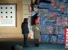 Экспозиция в галерее начинается с арт-объекта Алексея Хорошко и Сергея Петлюка. Это символический вход-коридор, выложенный из клетчатых базарных сумок как символа международной коммуникации.