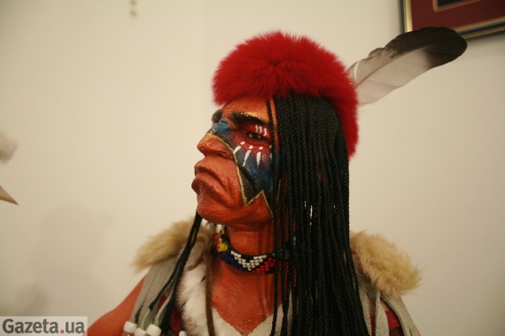 К презентации фильма "Прошедший сквозь огонь" в Тернопольском культурном центре "Победа" открылась выставка традиционной индейской одежды, оружия и ритуальных предметов из частной коллекции местного "индианиста" Олега Соколовского. Коллекционер рассказал о принципе работы тамошних шаманов.