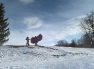 "Маланка в Красне сочетает в себе три культуры, - рассказывает Дмитрий. - Само слово "Маланка" пришло из украинской традиции. У румын такого праздника нет - там водят не женщину Маланку, а Цыган водит Медведя. Одевают вывернутую овечью или настоящую медвежью шкуру. В Красне медведь соломенный, что не соответствует ни румынской, ни украинской традициям. Когда исследовал историю села, оказалось, что к концу XIX века там жили немцы. А в Германии есть праздник урожая в городе Вурмлинген, которое тоже проходит в январе. Тогда водят такого же соломенного медведя улицами, а затем солому сжигают, чтобы в следующем году был урожай. Костюм медведя может быть до ста килограмм. Один из героев фильма за ночь потерял 7 килограмм, пока носил. При этом он был перед этим травмирован, в плече носил металлический штырь. Для краснян - это как долг природе, который должен вернуть. Природа тебе весь год что-то давала, отдай и ты ей. Имеешь здоровье или силу - отдай кусок".