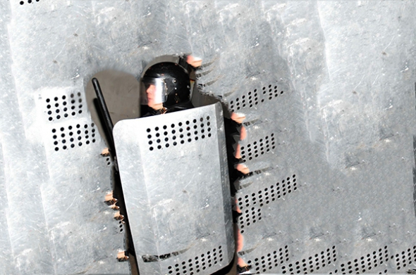 Потім була команда на вихід, шикування перед автобусом і блокування входу до відділку. Події пішли у звичному руслі, Бембі відчував, як його починає ковбасити від адреналіну. До нього повернувся хороший настрій. Вже сутеніло, коли Іванич дав нарешті відмашку. Загін рушив на протестувальників, погрюкуючи кийками о щити, але натовп не посунувся, як це зазвичай бувало, ані на крок назад. Навпаки, зсунулися щільніше, зчепилися ліктями. Бембі тільки хмикнув про себе, подумки приміряючись, кого би ударити першого.