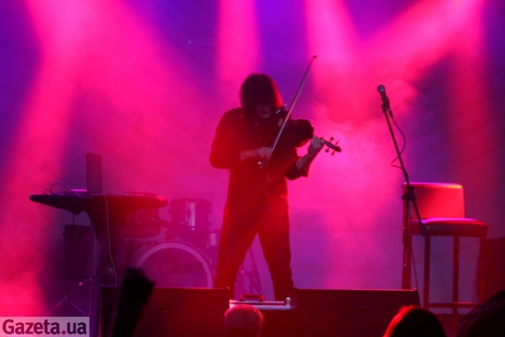 Полчаса не отрывается от скрипки на разговоры с публикой, во время гуцульских мотивах ноги музыканта ходят ходуном.