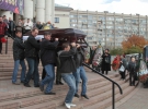Прощание началось в 10. На манеже поставили гроб. Возле нее на стульях сидели жена и брат покойного, за ними - родственники. К гробу по очереди подходили работники цирка - клоуны, гимнасты, дрессировщики. Провести Владимира Шевченко в последний путь приехали цирковые деятели России. Вокруг манежа выставили венки от президента, правительства, министерства культуры, выложили Бурдэ розы, красные гвоздики и желтые хризантемы.