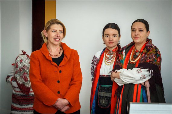 Виктория Щербань (слева) на презентации коллекции детских украинских костюмов в музее Т. Шевченко в Киеве
