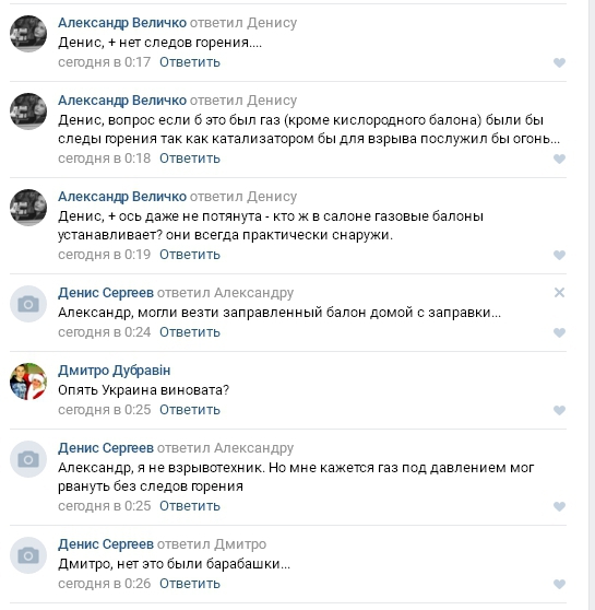 Однако жители Донецка не разделяют его мнение. Среди причин случившегося называют неисправность газового баллона и желание конкурентов отомстить водителю, работавшему на рынке и везшему товар.