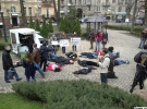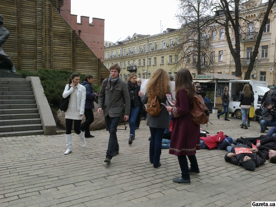 Активисты общественного движения "Видсич" сегодня утром в центре Киева провели флешмоб "Не покупай российское". В 8.30 к мобильным кофейням одновременно подходили по несколько активистов. Спрашивали, какие кофе и чай те продают. Если им отвечали, что "Greenfield" или "Lipton" - падали на тротуар, держа плакаты "Не покупай "Greenfield" и "Lipton" - не финансируй войну".