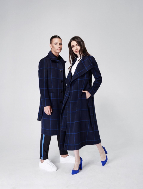 "Большая клетка - это благородно и красиво, особенно в сочетании с королевским темно-синим оттенком", - объясняет Владимир Подолян, демонстрируя пальто из осенне-зимней коллекции.