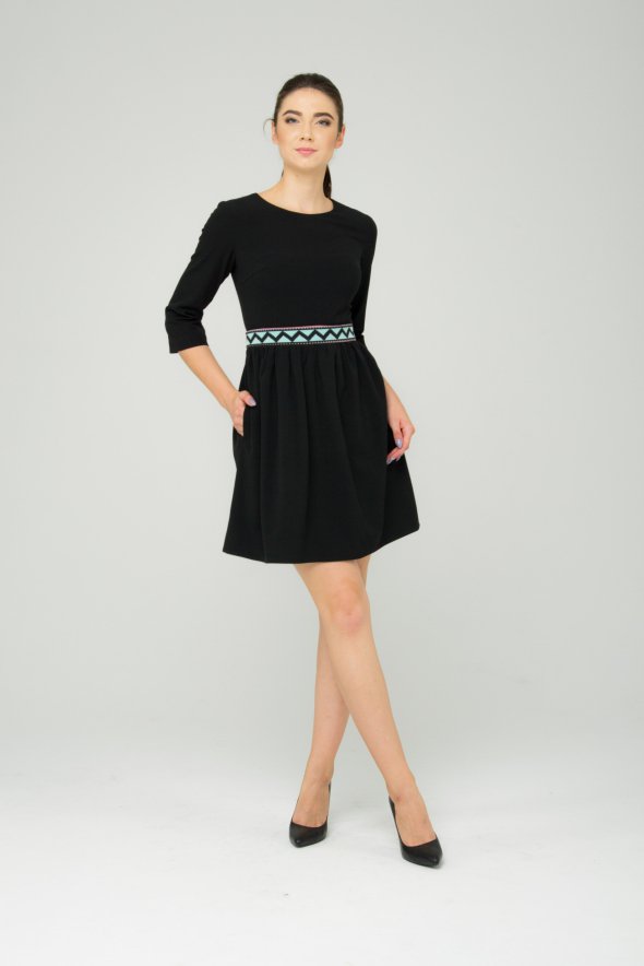 Если выбираете платье для работы, то лучше взять лаконичный вариант длиной до колена. Если же вам надо на вечерний выход, то тут можно поэкспериментировать с длиной. К примеру, сейчас дизайнеры рекомендуют модели черных платьев, где будет акцент на талии. Это может быть пояс, отделанный ярким принтом, который будет оттенять общий силуэт.