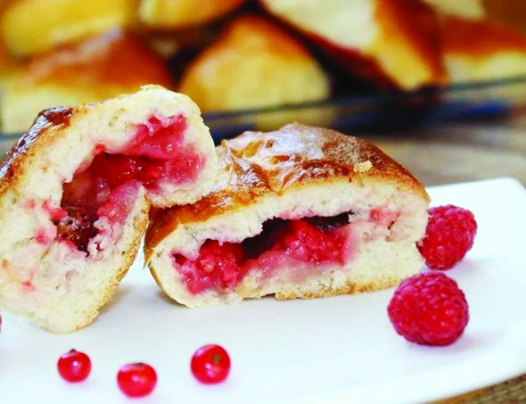 Вкусные также жареные пирожки с малиной. На их приготовление тратится гораздо меньше времени.
