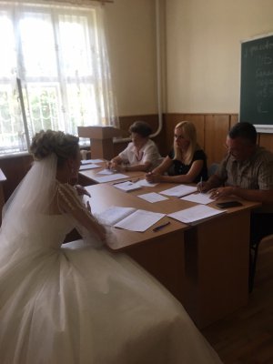 На вступительный экзамен в Мукачевский государственный университет в Закарпатской области абитуриентка пришла сразу после свадьбы: с мужем и в свадебном платье.