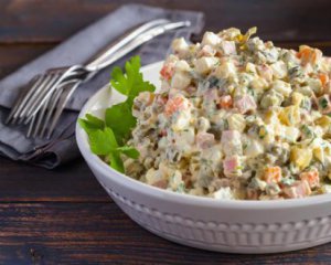"Возьмем оливье. Это салат, потому что в нем много порезанных компонентов и соус: картофель, морковь, лук, огурцы, мясо, яйца и жирный майонез. Собственно, оливье может быть полноценным блюдом, а не салатом: здесь есть белки, жиры, медленные углеводы. Что сделать? Есть оливье — не готовьте больше калорийных блюд", - подчеркнула Супрун.