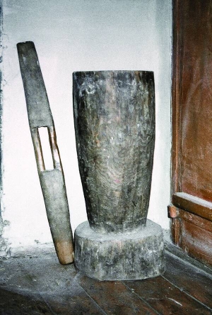 Когда-то такие ступы были в каждой сельской хате. У них неочищенные зерна пшеницы, ячменя, проса или гречки толкли на крупы. К началу 1970-х бабкины соседи обзавелись удобными ножными ступами, а некоторые даже крупорушку купили. Баба сохраняла верность своей ступе, доставшейся ей в наследство от матери. Уверяла, что в ней можно "перетолочь и уморить" все болезни и людей, и скота.