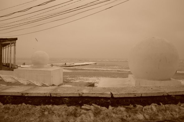 В 1918 году приморские территории города подверглись страшному оползню, который уничтожил близлежащие дома и большую часть курортной зоны. За восстановление взялись только через 13 лет. Укрепили склон, построили пляжный павильон, а на спуске к пляжу разместили парковые скульптуры - "Два шара".