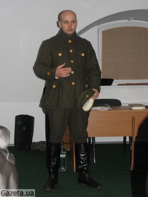 Максим Демчик, член Клуба военно-исторической реконструкции "Чета пешей разведки III Железной дивизии армии УНР" продемонстрировал тогдашнюю форму украинских воинов.