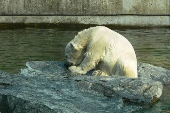 Медведь Гус (слева), ставший звездой зоосада Центрального Парка Нью-Йорка, в 90-х годах был завсегдатаем местных газет. Дело в том, что 320-килограммовый медведь, одержимо плавал в бассейне по 12 часов в день. Его называли "невротиком" и "депрессивным медведем", после чего начали лечить прозаком. Лечение прошло удачно – Гус умер в возрасте 27 лет, прожив значительно дольше среднего.