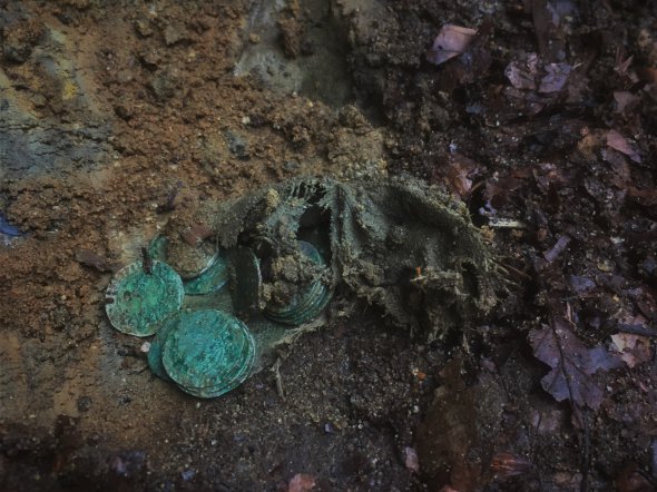 История клада началась случайно. В 2017-м пожилая пара гуляла по лесу и нашла 4 монеты между ветвями и листьями. Находку передали в местный музей. Впоследствии другие люди начали передавать подобные монеты. Тогда археологи решили посетить район. В сентябре этого года с помощью металлоискателя удалось обнаружить все сокровища. Такое количество монет впервые находят в Дании.
