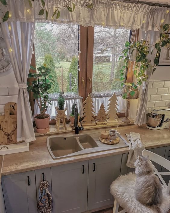 Как правило, это пространство остается пустым, но для маленькой кухни это непозволительная роскошь. Поэтому здесь можно расположить дополнительный шкаф от пола до подоконника. Еще один вариант задействовать это пространство – заложить подоконник плиткой, тогда на него можно будет ставить горячие сковородки и кастрюли.
