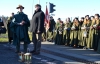 Памятник основателям Киева с начала протестов завесили флагами Украины и ЕС. Кий, Щек, Хорив и Лыбидь держат флаги руками, ногами, засунутые им за пазуху и намотаны на лук.