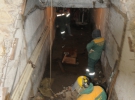 В среду 30 января заходим в Гостиный двор. Активисты зовут посмотреть, как работает желтая бурильная машина, просят сфотографировать трещину на стене двухэтажного помещения, которая образовалась от бурильных работ. Услышав о приближении журналистов, бурильная машина глушит мотор. Рабочие отворачиваются от фотокамеры.