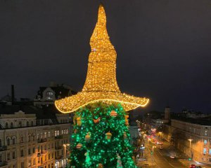 В Православной церкви Украины раскритиковали главную елку на Софийской площади в Киеве, верхушку которой вместо традиционной звезды украсили "колдовской шляпой".